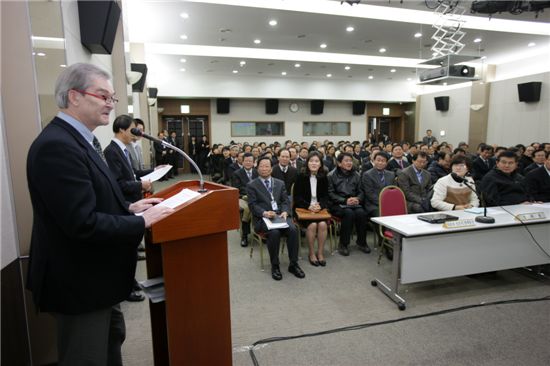 $pos="C";$title="";$txt="성북다문화빌리지센터 한스 알렉산더 크나이더 명예동장(사진 왼쪽)이 5일 오전 새해 들어 처음 열린 성북구청 확대간부회의에 참석해 인사말을 하고 앞으로의 센터 계획을 밝히고 있다.