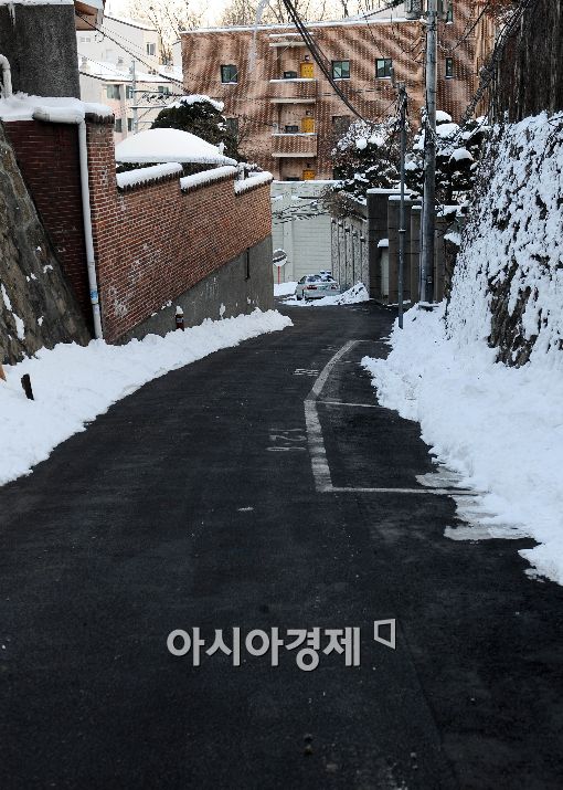 [아시아경제 이재문 기자] 6일 오후 서울 종로구 청운동 한 주택가 골목은 눈을 깔끔히 치워 깨끗한 모습을 보이고 있다..