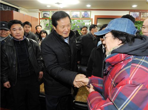 [아시아경제 장용석 기자] 윤증현 기획재정부 장관이 7일 오전 경기도 성남 소재 직업소개 업체인 ㈜두리인력건설을 방문, 구직 근로자 등과 만나 이들의 애로사항을 듣고 정부의 고용정책 방향 등에 대해 설명하고 있다.