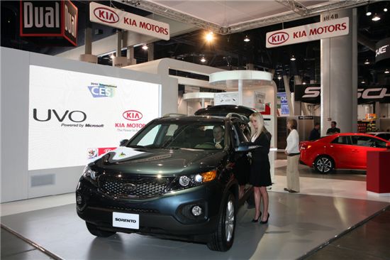 $pos="C";$title="";$txt="기아자동차가 7일부터 10일까지 미국 라스베거스 컨벤션 센터에서 개최되는 '2010 국제 전자제품 박람회(CES)'에서 마이크로소프트와 함께 개발한 차세대 차량용 인포테인먼트 시스템 유보를 최초로 공개했다. 사진은 기아차 부스에서 유보가 장착된 쏘렌토R을 관람객이 시현하고 있는 모습.";$size="550,366,0";$no="2010010711233558335_1.jpg";@include $libDir . "/image_check.php";?>[아시아경제 손현진 기자]기아자동차㈜가 올해 CES에 단독 전시관을 마련하고 미래 자동차 첨단 기술을 소개했다.