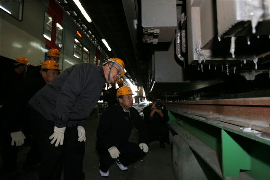 허준영 한국철도공사 사장은 이날 서울 구로차량관리사무소 등을 찾아 전철 출입문의 결빙 상태와 옆벽 틈새로 들어온 눈 녹이는 현장을 살폈다.