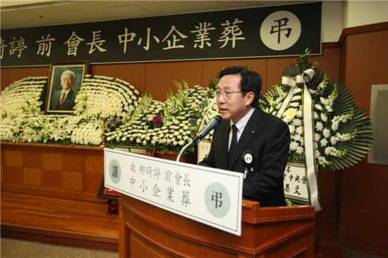 그는 이어 "생전에 회장님의 쏟은 열과 성이 밑거름이 돼 이제 중소기업중앙회도 중소기업 정책개발의 산실로서 명실공히 국내 최고의 경제단체로 인정받고 있다"며 고인의 명복을 빌었다.