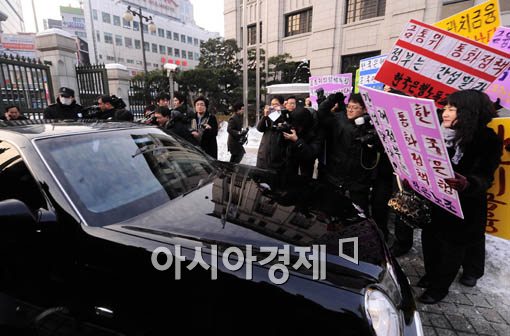 [아시아경제 윤동주 기자] 8일 오전 서울 남대문로 한국은행에서 열린 금년 첫 금통위에 허경욱 재정차관이 참석하기 위해 한국은행으로 들어서는 순간 한은 노조원들이 '기획재정부의 회의 참석이 관치금융의 시작'이라는 내용의 피켓을 들고 구호를 외치고 있다.