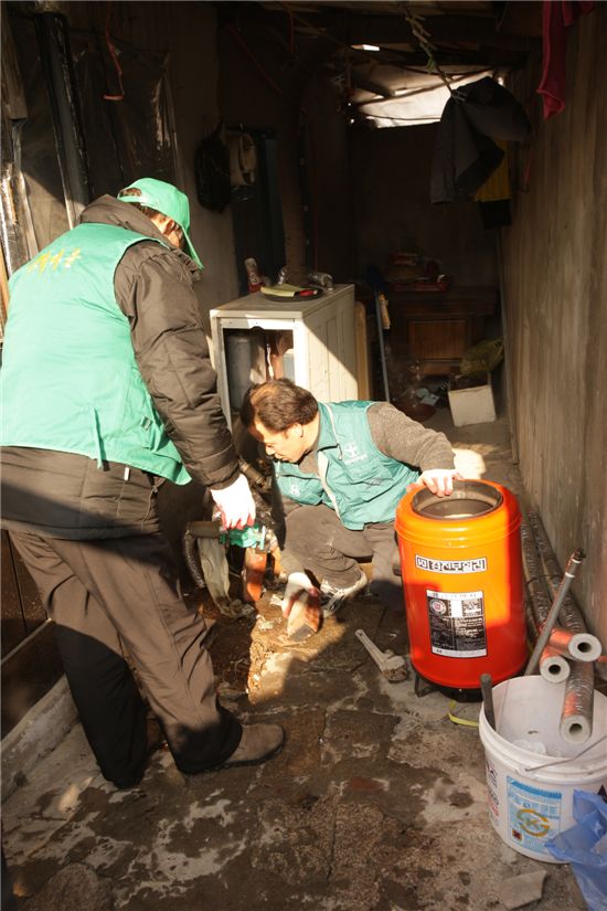 이들은 연탄 난방시설 수리와 함께 집안도 청소해주고 인근의 눈도 치운다.