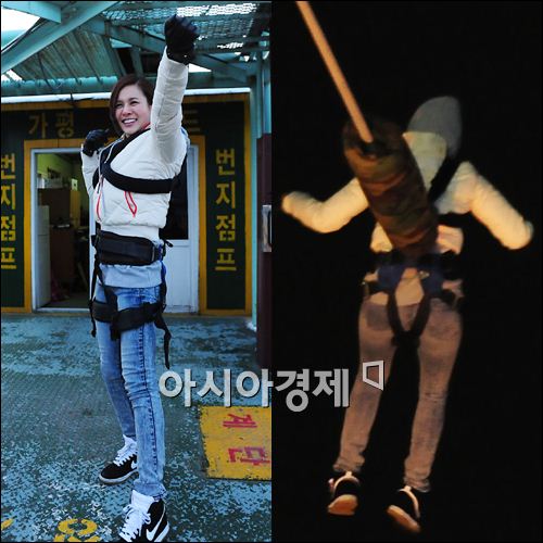 [가평(경기) = 아시아경제 박성기 기자]가수 아이비가 가수 이승기도 못한 '국내 최고 번지점프'에 도전, 성공했다.