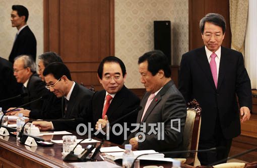 [아시아경제 윤동주 기자] 세종시 수정안 발표를 앞두고 11일 오전 서울 세종로 정부종합청사에서 마지막 세종시민관합동회의가 열렸다.