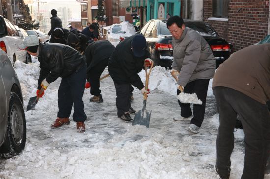 그 결과 각 동별로 300여명, 총 6000여명의 구민들이 자발적으로 눈치우기 작업에 나섰으며 9, 10일까지 이어졌다.