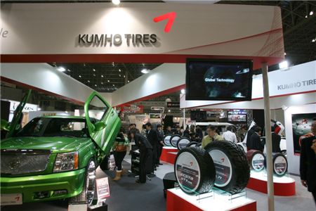 금호타이어는 이번 전시회에 세계 최초로 개발한 향기나는 아로마 타이어, 드리프트용 컬러스모크 타이어 등을 전시한다. 친환경 추세에 발맞춰 에코윙 시리즈, 스포츠세단용 엑스타LE 등도 같이 준비했다. 이 회사는 이미 일본 모터스포츠 대회인 슈퍼GT에도 수년간 참가하는 등 일본 현지에서 꾸준히 마케팅 활동을 펼치고 있다.