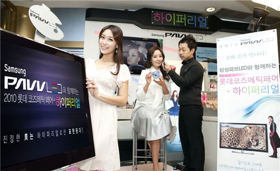 삼성전자는 오는 17일까지 롯데백화점에서 열리는 '2010 롯데 코스메틱 페어'에 참여해 LED TV 체험기회를 고객에게 제공하기로 했다고 15일 밝혔다. 결혼을 앞두고 혼수를 준비하는 20~30대 여성과 TV 교체를 고려중인 40~50대 여성 고객들을 공략하기 위한 차원이다.
