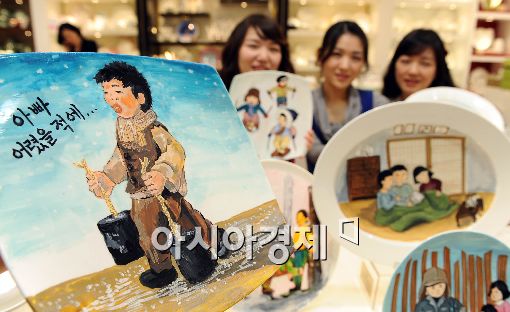 [아시아경제 이재문 기자] 한국도자기가 17일 서울 소공동 롯데백화점 본점에서 옛 겨울 추억이 담긴 ‘아빠 어렸을 적에 도자기’를 선보여 고객들의 눈길을 끌고 있다. 이날 선보인 도자기는 아빠의 어릴 적 겨울 추억을 담은 모습을 그림으로 표현했다.