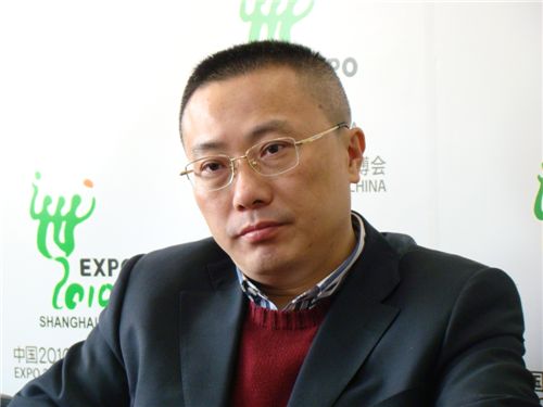 그에게 상하이 엑스포의 개최 의미를 묻자 중국인들이 안방에서 미래의 세계를 둘러볼 수 있다는 점을 들었다.