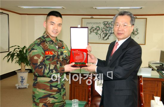 [아시아경제 양낙규 기자]병무홍보대사로 활동해온 해병대 이정 상병이 감사패를 받았다.