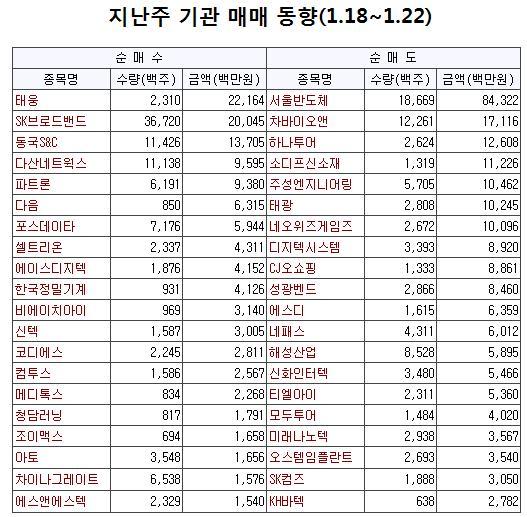기관도 서울반도체(-843억원 순매도)와 차바이오앤(-171억원), 하나투어(-126억원), 소디프신소재(-112억원) 등에 대해 차익 매물을 쏟아냈다.