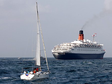 한편 1967년 처음 진수된 QE2는 6만 6851t, 길이 294m, 폭 32m의 규모로, 시속 28.5㎞에 승객 정원만 2025명인 초호화 여객선이다. 대서양만 800회 이상 횡단했고 세계를 25번이나 일주했다.