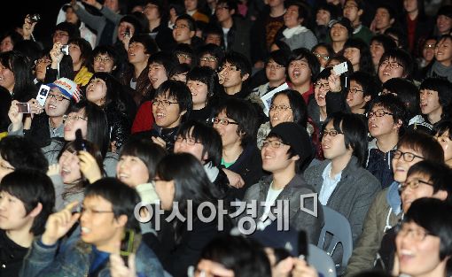 [아시아경제 이재문 기자] 한양대학교 신입학 합격생 5천여명이 28일 오후 서울 한양대학교 올림픽 체육관에서 열린 신입생 환영회 'New Lion King Festival'에서 인기 걸그룹 포미닛의 공연을 보며 즐거운 시간을 보내고 있다.