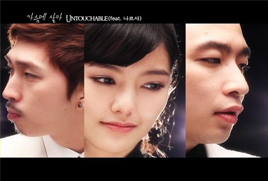 한편 8개월 만에 컴백하는 언터쳐블의 이번 타이틀곡 ‘가슴에 살아’는 추억에 가슴 아파하는 이별한 연인의 심정을 감각적으로 표현한 곡으로 언터쳐블 특유의 가슴을 파고드는 랩과 피처링에 참여한 브라운아이드걸스 멤버 나르샤의 보컬이 절묘하게 어우러지며 감성을 자극한다.