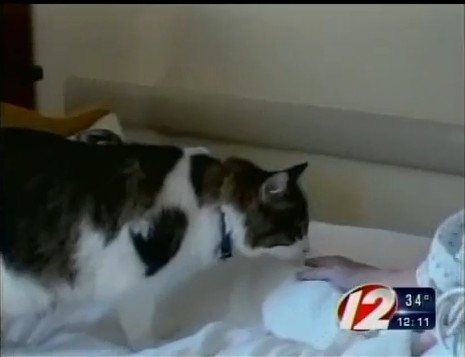 한번은 간호사들이 곧 운명할 것 같은 환자의 병상 위에 오스카를 올려놓았다. 하지만 녀석은 곧 바로 나가 다른 병실의 환자 옆에 가 앉았다.
