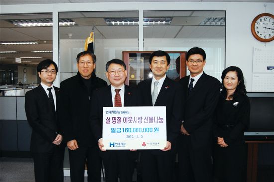 현대제철은 3일 서울사무소에서 이웃사랑 선물 나눔 전달식을 갖고 6000만원 상당의 선물세트와 1억원 규모의 재래시장 상품권을 박을종 사회복지공동모금회 사무총장에게 전달했다.