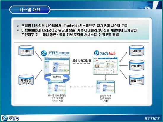 연계시스템은 ‘나라장터’에 한번 로그인해 지식경제부의 uTradeHub까지 이용할 수 있는 SSO방식이다.