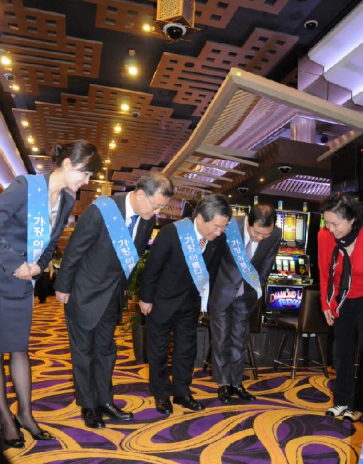 $pos="C";$title="그랜드코리아레저";$txt="권오남 그랜드코리아레저(주)(GKL) 사장과 임직원들이 5일 외국인전용 카지노 ‘세븐럭’ 서울강남점 영업장에서 서비스 교육 체험을 하며 고객을 맞이하고 있다.";$size="510,653,0";$no="201002051732150426645A_1.jpg";@include $libDir . "/image_check.php";?>[아시아경제 조강욱 기자] 외국인전용 카지노 '세븐럭'을 운영하는 그랜드코리아레저(GKL)의 대표이사와 임원진이 카지노 서비스 운영자로 직접 나섰다.