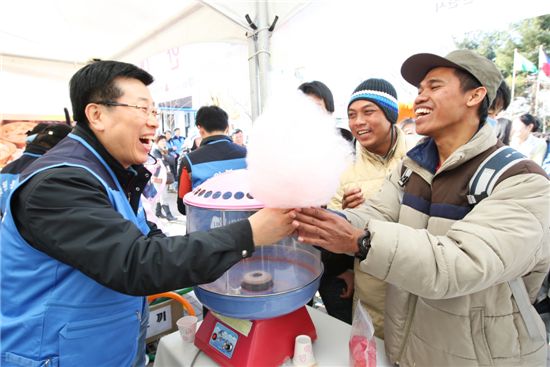 윤용로 은행장 부부와 기업은행 임직원 100여명은 이날 자원봉사자로 나서 외국인 근로자 800여명에게 떡국과 인도네시아, 태국, 중국 등지의 전통음식을 나눠줬다.