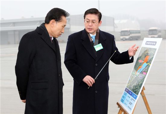 아울러 "앞으로 이 지역에 세종시도 생기고 물류의 중심으로 인적 왕래가 많아질 것"이라며 "청주공항은 살릴 수 있는 방향으로 검토하겠다"고 말했다. 이 대통령은 이 자리에서 배석한 관련 부처 차관에게 바로 시행에 착수할 것을 지시했다.