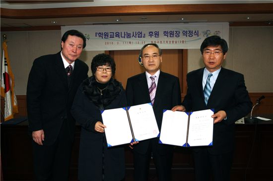 동작구(구청장 김우중)는 11일 김경규 부구청장과 문준 동작구 학원연합회장 등 관계자가 참석한 가운데 구청 3층 기획상황실에서 ‘학원 교육나눔 사업’후원 학원장 약정식을 가졌다.