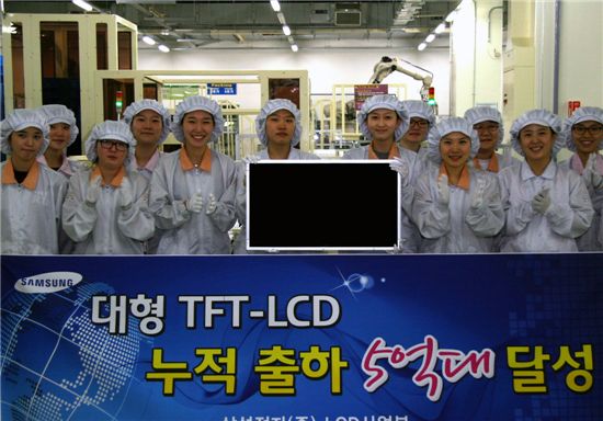 삼성전자는 1995년 LCD사업을 시작해 10년만인 2005년 대형 LCD 판매에서 누적 1억대를 처음으로 돌파했고, 이어 2007년 2억대, 2008년 3억대, 2009년 4억대를 돌파한 데 이어 지난달 5억대를 넘어섰다.