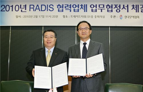 한국무역협회와 한국화주협의회는 2010년도 수출입운임할인서비스(RADIS) 사업에 참가할 물류협력업체 25개사를 선정하고, 17일 서울 삼성동 트레이트타워에서 협력업체 대표들과 업무협정을 체결했다.