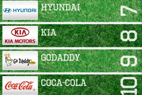 현대자동차와 기아자동차가 전체 순위에서 각각 7위와 8위에 랭크된 것도 눈길을 끈다. 특히 현대차는 인기 풋볼선수 브렛 파브를 등장시킨 패러디 광고로 트위트 이용자들에게 큰 인기를 얻었다. 현대차는 이번 수퍼볼에 총 8편의 광고를 내보내는물량 공세를 폈는데, 각 광고마다 뚜렷한 메시지를 전달한 점 등이 호평을 받았다.