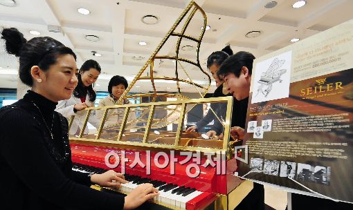 [아시아경제 이재문 기자] 현대백화점이 17일 서울 삼성동 무역센터점에서 열린 '세계 희귀 피아노 특별전'에서 2억 8천만원 상당의 금속피아노를 선보여 고객들의 눈길을 끌고 있다. 이번 전시회에는 이루마 피아노, 서혜경 피아노, 디토 피아노 등 유명 아티스트의 시리즈도 함께 전시. 판매된다.
