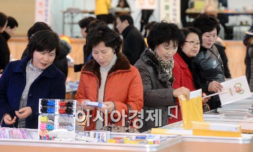 [아시아경제 이재문 기자] 18일 오후 서울 강남구 수도전기공업고등학교에서 열린 '2010 강남교육대전'을 찾은 학부모들과 학생들이 교재를 살펴보고 있다.