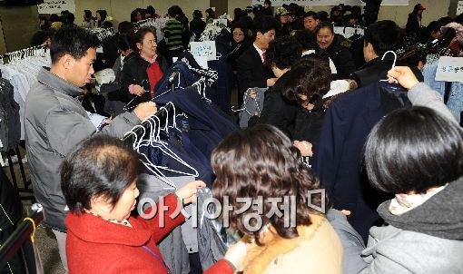 [아시아경제 이재문 기자] 19일 오전 서울 성북구청에서 열린 교복물려주기 알뜰장터를 찾은 많은 학생과 학부모들이 구내 중고등학교 교복을 고르고 있다.