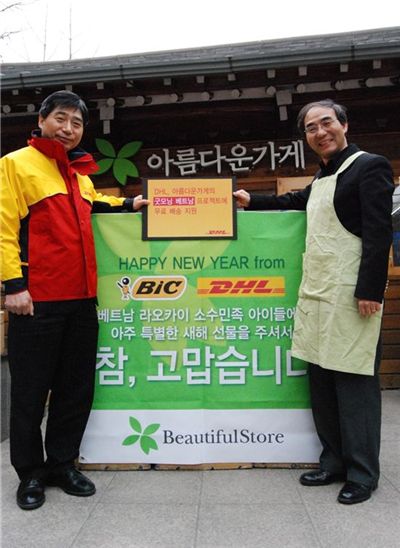 $pos="C";$title="";$txt="DHL코리아 박두석 상무(왼쪽)와 아름다운가게 김수열 사무청장(오른쪽)이 베트남 소수민족 어린이들에게 배송할 선물 앞에서 포즈를 취하고 있다. ";$size="400,548,0";$no="2010021914365828220_1.jpg";@include $libDir . "/image_check.php";?>[아시아경제 손현진 기자]세계적인 종합물류기업 DHL이 아름다운가게의 해외배분사업 중 하나인 '굿모닝, 베트남' 프로그램을 지원한다.