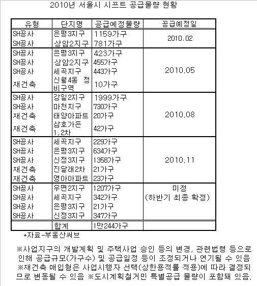 ◆올해 시프트 공급물량 총 1만224가구
