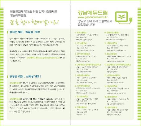 입학사정관제의 훌륭한 길라잡이가 될 '강남에듀드림'은 지역 내 모든 인문계 고교 홈페이지를 통해 만날 수 있으며 재학생이면 누구나 이용할 수 있다.