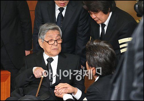 [아시아경제 박성기 기자]개그맨 구봉서가 24일 오전 서울 송파구 풍납동 아산병원에 차려진 故 배삼룡의 빈소에 들어서고 있다. 故 배삼룡은 23일 오전 2시 10분 흡인성 폐렴으로 사망했다.