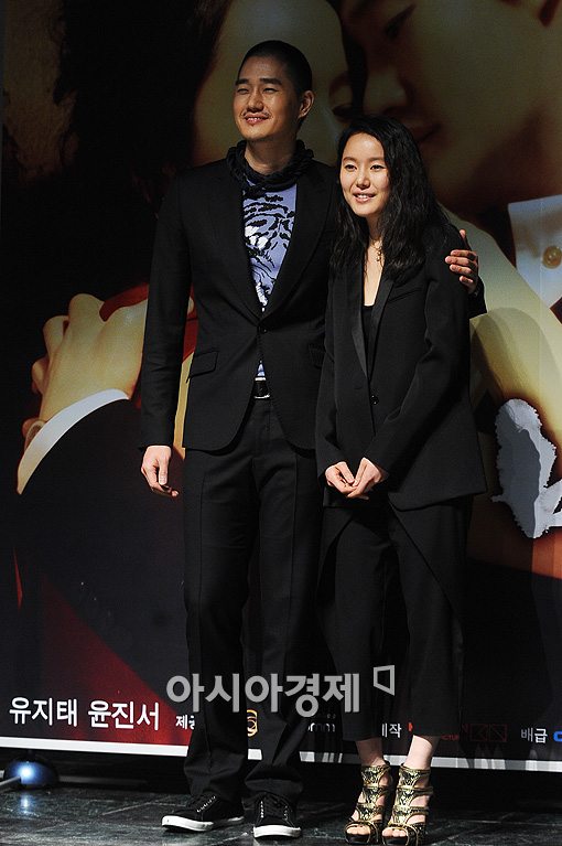 [아시아경제 이기범 기자]배우 유지태(왼쪽), 윤진서가 24일 오전 서울 정동 이화여고 100주년 기념관에서 열린 영화 '비밀애' 제작보고회에서 포토타임을 갖고 있다.