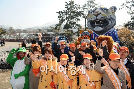 [아시아경제 이재문 기자] 24일 오전 과천 서울동물원 입구에서 열린 동행천사 발대식에서 직원들이 따스한 봄바람과 함께 북적될 즐거운 서울동물원을 만들기 위해 서비스 실천을 다짐하고 있다.