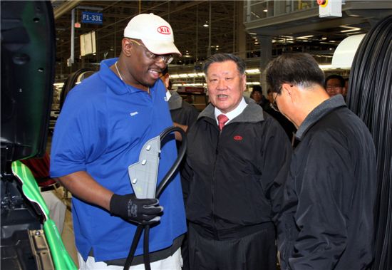 최근 신형 쏘나타 도어 잠금장치 결함 소식을 전해 듣고 대로(大怒)했던 정 회장은 이 자리에서 "최고 품질의 차량을 생산해야 한다"며 품질 경쟁력을 여러 차례 강조했다. 기아차 조지아공장은 기아차 최초의 미국 생산기지로 지난해 11월부터 쏘렌토R을 생산하고 있다.