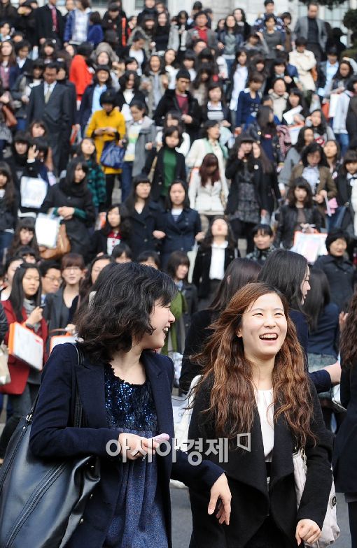 [아시아경제 이재문 기자] 2010학년도 대학 신입생 입학식이 시작된 가운데 26일 오전 서울 이화여대 대강당에서 열린 입학식을 마친 신입생들이 밝은 웃음으로 새로운 대학생활의 첫 장을 열고 있다.