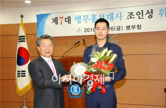 [아시아경제 양낙규 기자]병무청은 서울지방병무청에서 공군 병사로 복무 중인 배우 조인성씨를 제7대 병무홍보대사로 위촉했다고 27일 밝혔다.