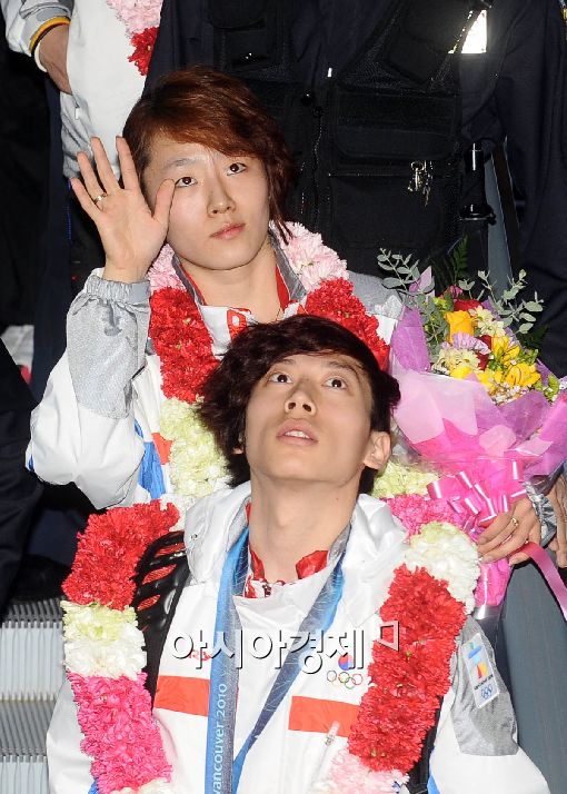 [아시아경제 이재문 기자] 2010밴쿠버동계올림픽에서 역대 동계올림픽 출전 사상 최고의 성적을 낸 한국 선수단이 2일 오후 인천공항을 통해 입국, 여자 스피드스케이트에서 금메달을 딴 이상화 선수가 손을 흔들고 있다.