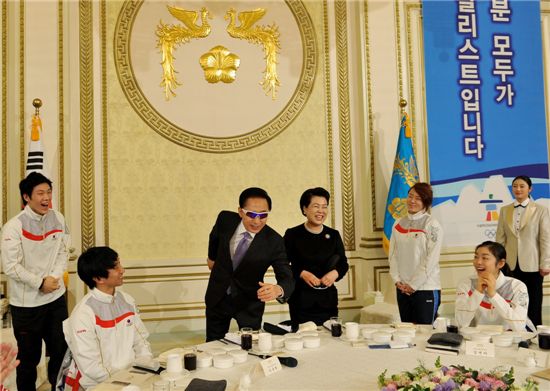이 대통령은 봅슬레이 강광배 선수에게 "봅슬레이 속도가 너무 빨라서 우리 선수가 다치지 않을까 걱정했다. 강 선수는 맨 앞에서 봅슬레이를 이끄는 것 같더라"고 물었다. 강광배는 "휘슬러경기장이 최고 시속 155km가 나오는 세계에서 가장 빠른 봅슬레이 경기장이었다. 30개팀이 출전했는데 그중 11개 팀이 뒤집히는 사고가 났다"고 설명했다.
