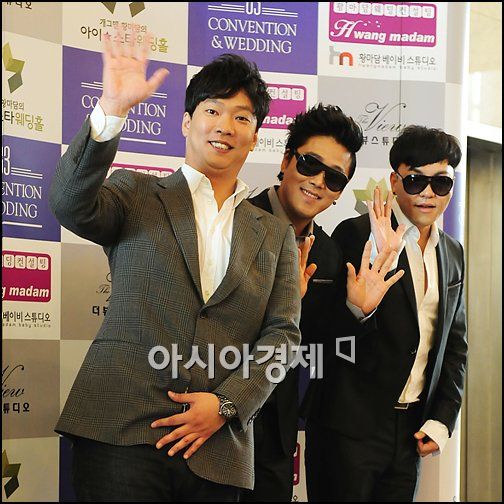 [아시아경제 박성기 기자]개그맨 박준형과 그룹 원투가 7일 오후 12시30분 서울 여의도 63빌딩에서 진행된 가수 박상민의 결혼식에 참석, 취재진과 인터뷰를 갖고 있다.