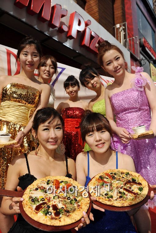 [아시아경제 이재문 기자] 미스터피자가 8일 오전 서울 명동1호점에서 피자 한판으로 7가지 다양한 맛을 경험할 수 있는 신제품 '드레스 7'을 선보이고 있다. 드레스7은 '핫 치킨 드레싱' '화이트크림치킨 드레싱' '갈릭치킨 드레싱' '바비큐치킨 드레싱'으로 맛을 낸 4가지 닭 가슴살과 3가지 스프레드 드레싱인 '시트론마멀레이드' '요거트크림치즈' '블랙세사미'를 한 번에 맛 볼 수 있다.
