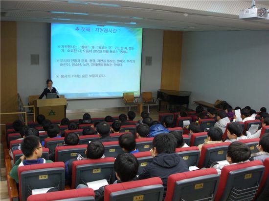 교육시간은 50분가량이며 전교생을 대상으로 ▲봉사활동의 개념과 절차 ▲봉사자 유의사항 ▲봉사활동 영역 등을 안내한다.