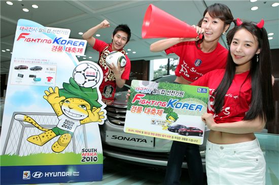 현대차는 2010 남아공 월드컵의 전국민적인 붐조성을 위해 3~4월 두 달간 지점·대리점 방문고객을 대상으로 푸짐한 경품을 제공하는 '태극전사 월드컵 선전기원 파이팅 코리아 경품 대축제'를 진행한다.