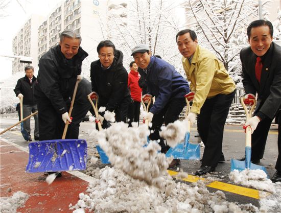 이날 제설작업에는 김성환 노원구의회 의장 등 10여명의 구의원과 부두완 시의원이 참여했다.