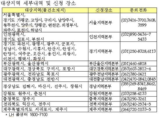 LH에서 매입을 추진하는 지역에서 매도를 희망하는 다가구주택 등 소유자는 오는 18일~26일까지 매도신청하면 된다. 문의는 LH 홈페이지(www.lh.or.kr), 관할 지역본부를 통하면 된다.